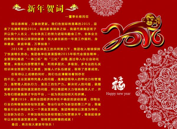 集團(tuán)董事長(zhǎng)楊民召2016年新年賀詞