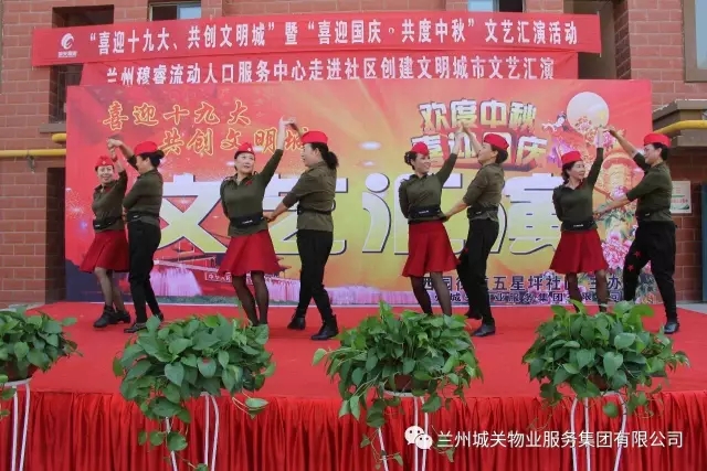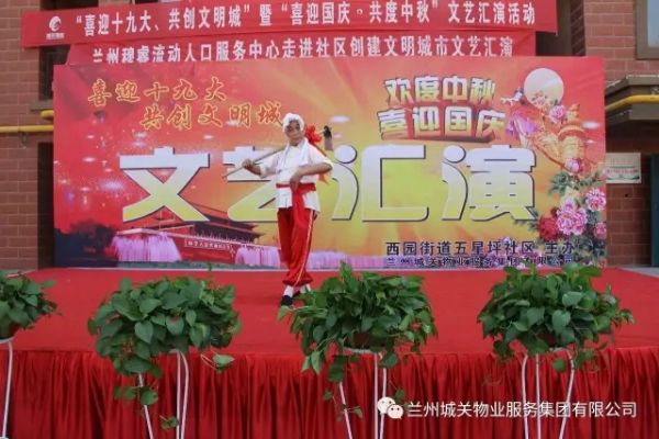 為了迎接黨的十九大勝利召開,積極配合創(chuàng)建全國文明城市工作的開展,豐富業(yè)主的文化生活,在“雙節(jié)”來臨之際,城關物業(yè)服務集團中石油項目部聯(lián)合五星坪社區(qū)共同舉辦了“喜迎十九大”文藝匯演。
