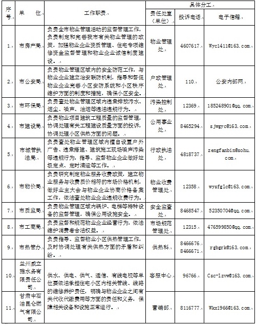 蘭州市物業(yè)管理相關(guān)責任單位及投訴電話公示