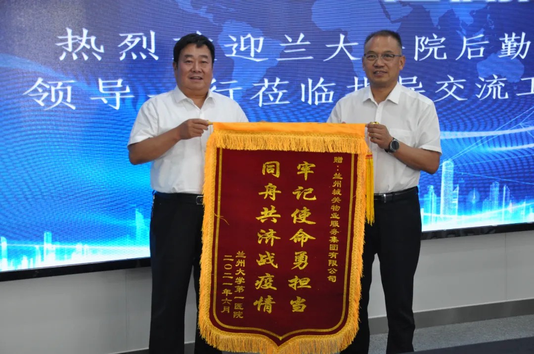 蘭州大學(xué)第一醫(yī)院后勤保障處陳處長(zhǎng)一行人專程來到蘭州城關(guān)物業(yè)服務(wù)集團(tuán)有限公司,將一面寫有“牢記使命勇?lián)?dāng) 同舟共濟(jì)戰(zhàn)疫情”的錦旗贈(zèng)予蘭州城關(guān)物業(yè)服務(wù)集團(tuán)有限公司,以此表達(dá)對(duì)城關(guān)物業(yè)的感謝和認(rèn)可。