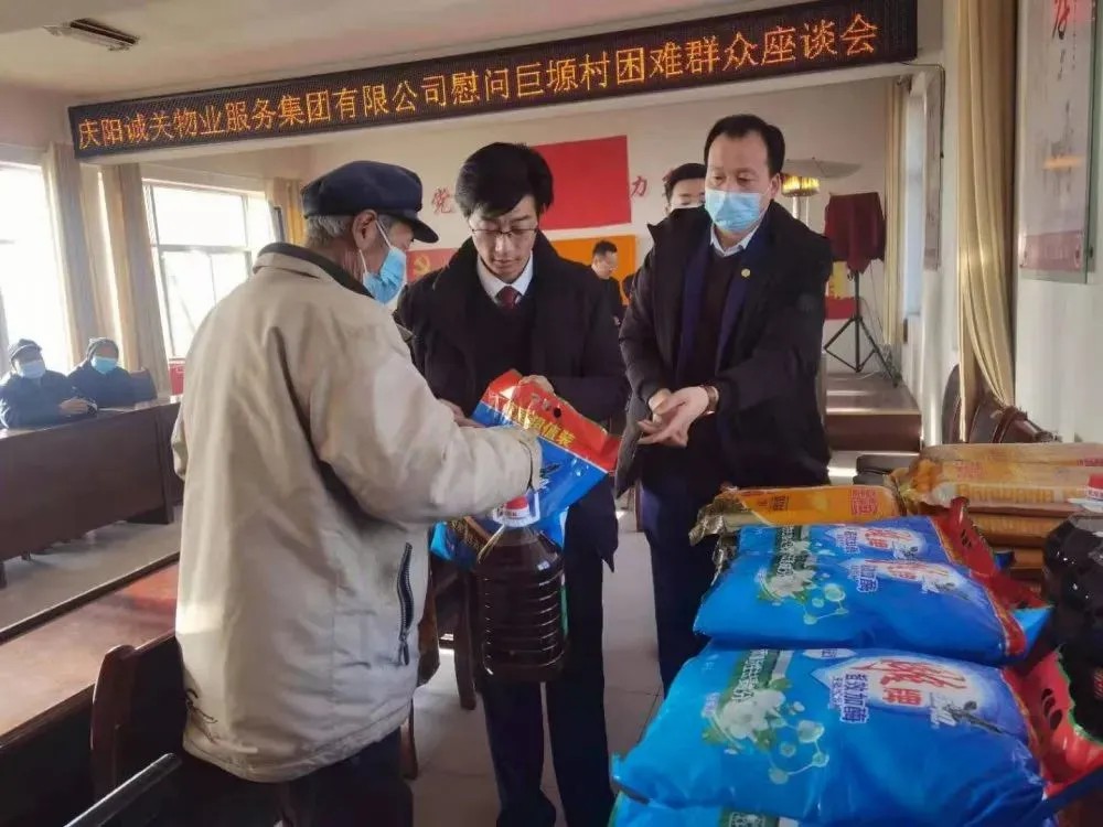 春節(jié)臨近,為了讓貧困群眾能度過一個(gè)快樂祥和的節(jié)日,感受社會(huì)帶來的溫暖,蘭州城關(guān)物業(yè)服務(wù)集團(tuán)有限公司慶陽(yáng)子公司在慶陽(yáng)市西峰區(qū)溫泉鎮(zhèn)巨塬村舉行了春節(jié)困難慰問活動(dòng)。