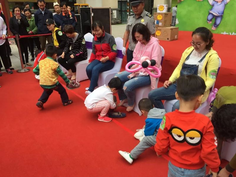 搞怪的卡通人物、炫酷的變形金剛、詼諧的小丑表演、精彩的活動內容、誘人的神秘獎品讓活動現(xiàn)場氣氛熱烈!按┰郊t外線”、“給爸爸媽媽穿鞋”等花樣繁多的互動游戲,考驗著爸爸媽媽與小朋友們的默契協(xié)作,各項比賽都競爭激烈,每個參賽家庭都全力以赴,力爭第一,活動現(xiàn)場一片歡騰,充滿著加油喝彩聲和大家的歡聲笑語。